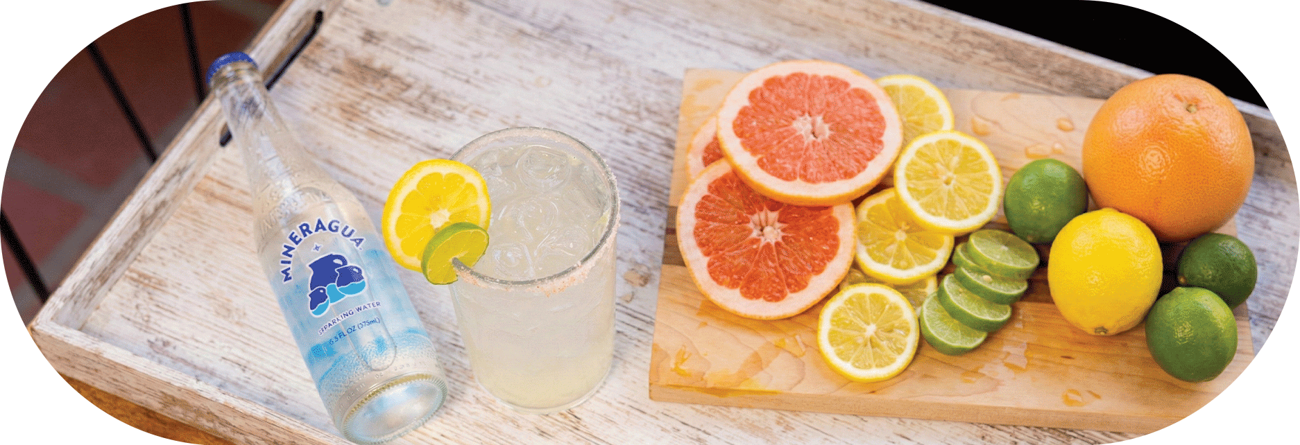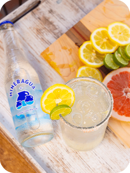 • Top with Mineragua. • Garnish with a citrus slice if desired.