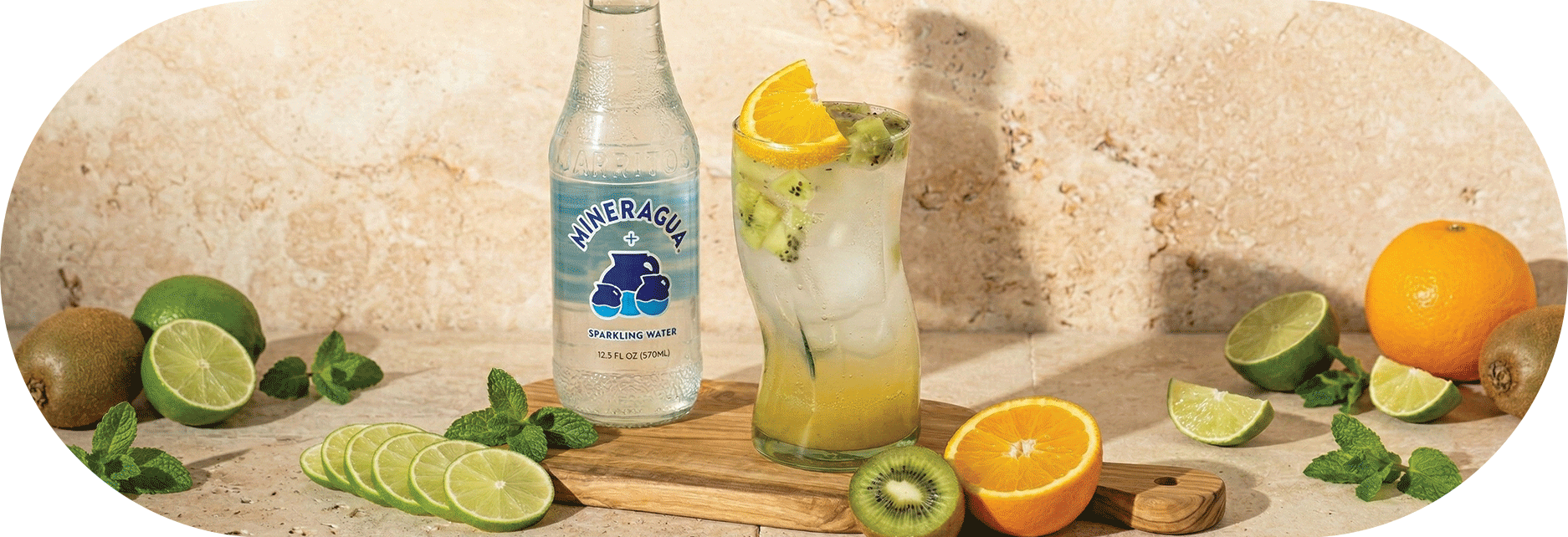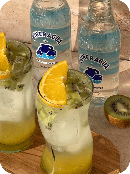 Zesty orange and fresh kiwi combine for a bright, playful drink lifted by Mineragua’s crisp bubbles.